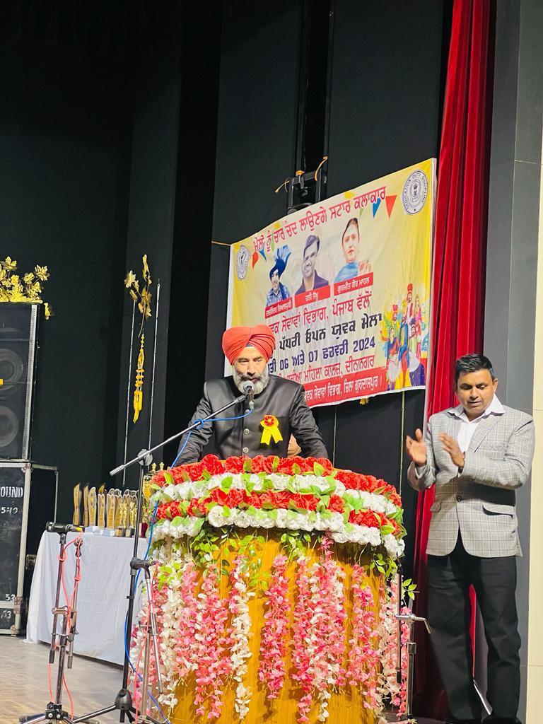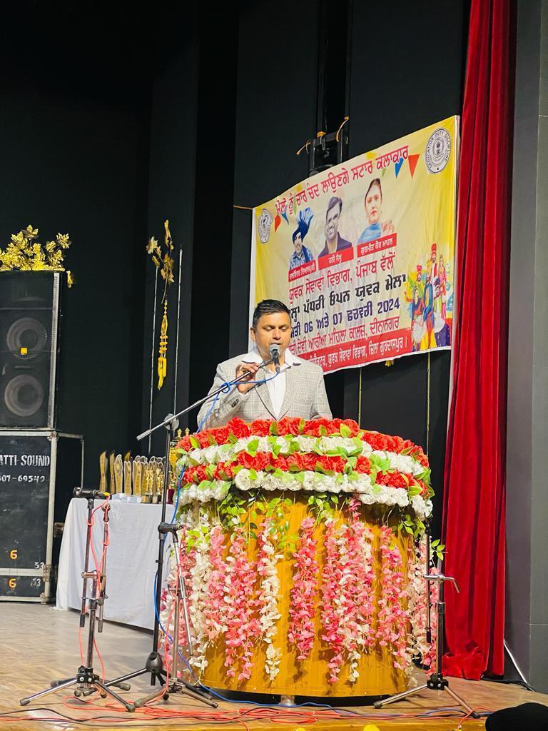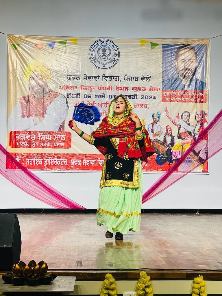 They were felicitated by Principal Dr. Sushma Gupta, Mr. Dharam Indu Gupta and Mr. Anil Gupta. The program started with lighting of the lamp followed by recitation of Ved mantras. The program was organized under the chairmanship of Mr. Ravi Dara, Assistant Director, Youth Services Gurdaspur. Special contribution was made by Mr. Vishal Kumar, Accountant, Youth Services Gurdaspur. Public Relations Officer Mr. Inderjit Singh Bajwa, while addressing the participants, said that along with education, practical knowledge is also important. Mr. Ravi Dara, Assistant Director, Youth Service Gurdaspur said that no society gets the status of a civilized society unless the women of that society are empowered. Dr. Kulwinder Kaur, the overall incharge of the event, while stating the impact of heritage of Punjabi culture talked about the significance of Punjabi Folk Songs. On the first day, Vaar, Kavishri, Mono Acting, Speech, Phulkari, Nala Weaving, Peerhi Weaving, Shikku Weaving, Pankhi Weaving, Utilization of Waste Materials, and Rangoli Competitions were organised. On the second day, Folk Song, Puratan Pehrava, Giddha and Bhangra competitions were organised. War singing by Mr. Gurnam Singh and Mr. Balveer Singh and Mr. Davinder Dyalpuriya’s singing were the center of attraction.