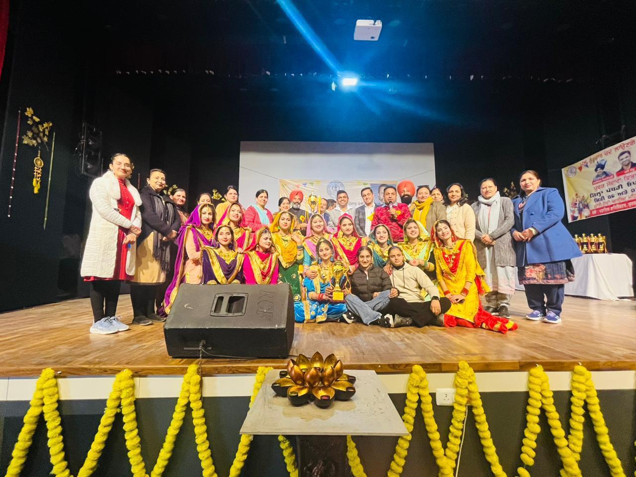 Sardar Gurnam Singh, Kalanaur and Sardar Balveer Singh judged the Vaar and Kavishri competitions; Mr. Saurav and Mr. Kamal Sarangal, the Theatre Artists judged the Mono Acting competition; Mrs. Priyanka Malhotra, P.R.T. Fine Arts, D.A.V School, Amritsar, Sardar Gurmeet Singh Bajwa, Lecturer, Government Senior Secondary School, Kalanaur and Shri Kamal Kumar, Fine Arts Lecturer, Shivalik Education of Mustabad judged the Speech and traditional Folk Art competitions; Mr. Davinder Dyalpuria and Harpreet Harry, Music Director judged the Folk Singing Competition; Ms. Gurmeet Kaur Mahal, Ms. Jaspreet Kaur and Mr. Mohan Lal judged the Puratan Pehrava competition; Mr. Tarunpal Singh, Mr. Honey Jhakhu and Mr. Manjinder Singh judged both the Giddha and Bhangra competitions. The stage was conducted by Dr. Neenu Sharma, Head, Department of Commerce and Ms. Dilpreet, Head, English Department. At the end of second day, all the winners were awarded by the guests. The chief guests, judges, the College Management and college staff were appreciated with the special honour. The college staff and students along with Dr. Sushma Gupta, Mr. Dharam Indu Gupta, Dr. Kulwinder Kaur, Dr. Deepak Jyoti, Ms. Randeep Dhoot, Ms. Sunita Verma, Ms. Sangeeta Malhotra, Dr. Neenu Sharma received the Champion Trophy by bagging