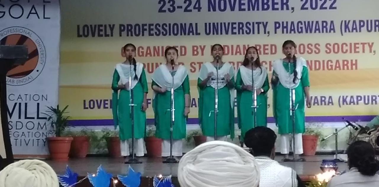 25 Nov 2022 ↑ Cadets of Youth Red Cross Unit participated in Youth Red Cross Day celebrations in the sweet memory of Bhai Ghanayia ji- an epitome of naam, compassion and obedience organized by Indian Red Cross Society, Chandigarh at Lovely Professional University, Phagwara on 23rd-24th November 2022. Cadets represented the college in various cultural items. Mr. Hitesh from Music Department and Ms. Kanika from Computer Department accompanied them. Principal Dr. Reena Talwar and Youth Red Cross Incharge Mrs. Randeep Dhoot congratulated the cadets for their active participation in the event.