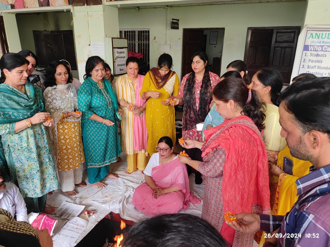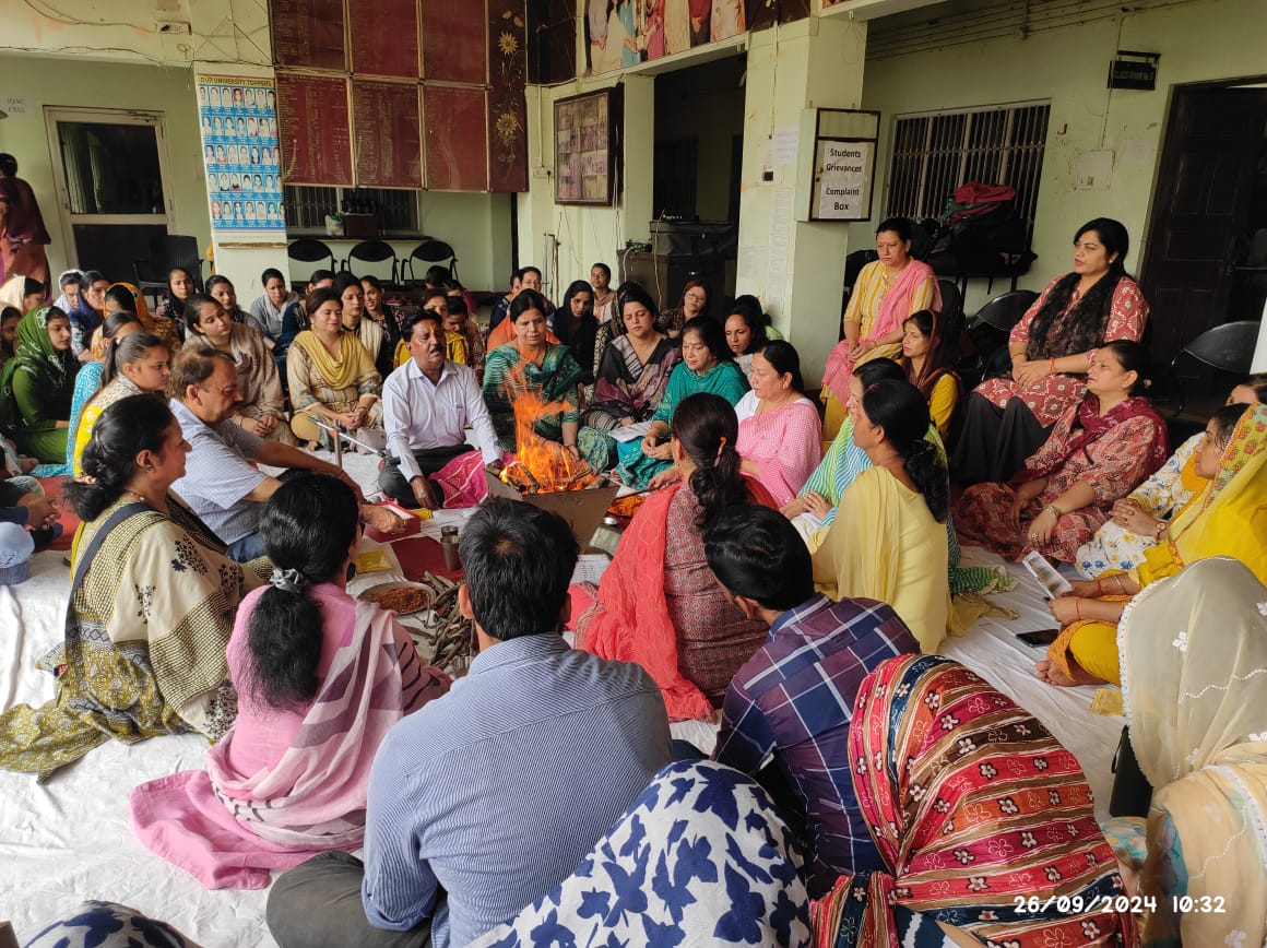 The ceremony commenced with the Ved Mantras in the presence of Mr. Dharam Indu Gupta, secretary managing committee, Mrs. Namita Gupta , member managing committee and college staff. The ceremony was performed HAWAN rituals, chanting sacred mantras and offering oblations to the sacred fire. The gathering participated in the recitation of prayers and hymns, seeking divine guidance and blessings for the new Principal. The HAWAN was conducted emphasizing the significance of the Hawan ceremony and the importance of spiritual growth in academic pursuits. Dr. Sarla Nirankari expressed her gratitude and commitment to the college's growth and excellence.