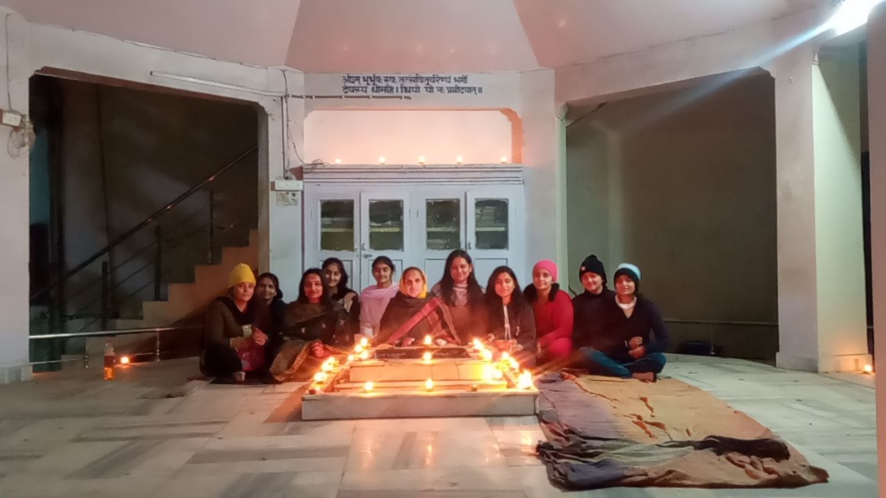 Ayodhya was in grip of religious fervour as long-awaited Pran Pratishtha ceremony of Ram Lalla took place on Monday in the presence of Prime Minister Mr. Narendra Modi, RSS Chief Mr. Mohan Bhagwat and other dignitaries. India was gripped in Diwali-like fervour with Lord Ram chants, posters, saffron flags, diyas, and firecrackers as the whole country celebrated the inauguration of the historic Ram temple in Ayodhya. The college staff and students sang many hymns and chanted the name of Lord Rama with great vigour. Principal Madam while addressing the gathering of devotees wished the blessings of Almighty Lord Rama on one all. She insisted that we must take lessons on righteousness, leadership by example, reverence for relationships, resilience in adversity, balancing tradition and adaptability, and the power of introspection from the life of lord Rama. After the Aarti, Parsad was distributed. The warden, helpers and students of hostel lit up diyas in the evening and celebrated Deepotsav. The event concluded wishing the well being of everyone.