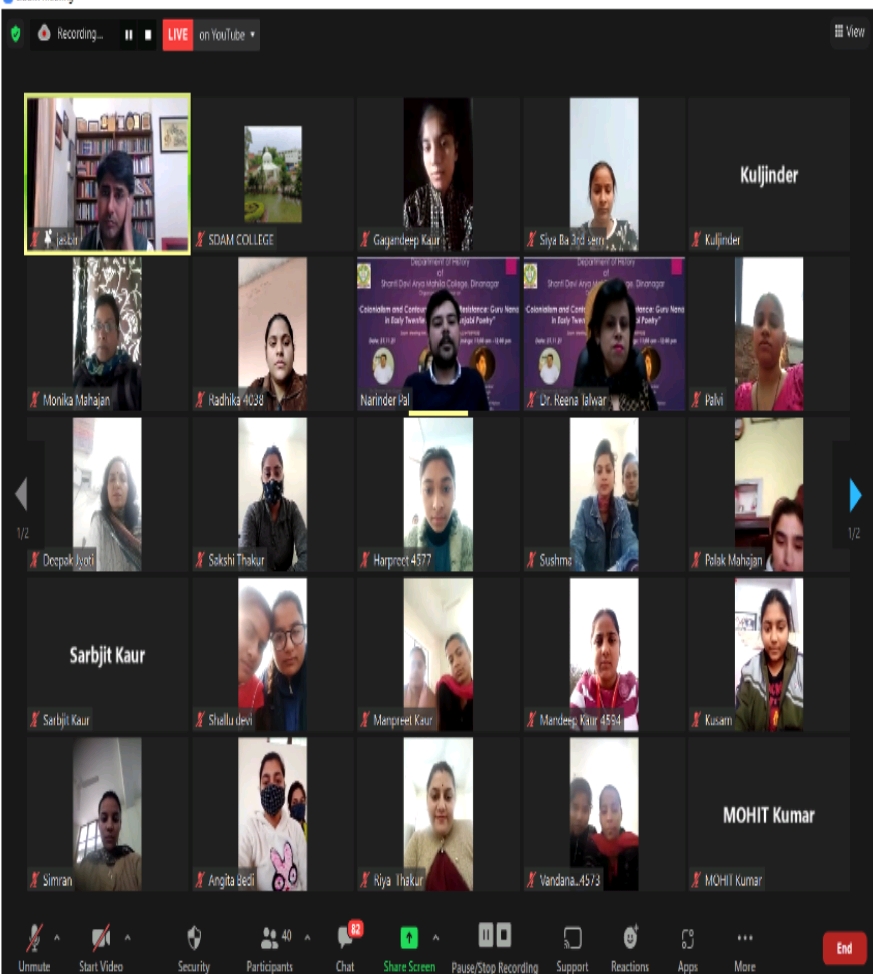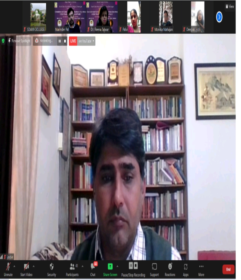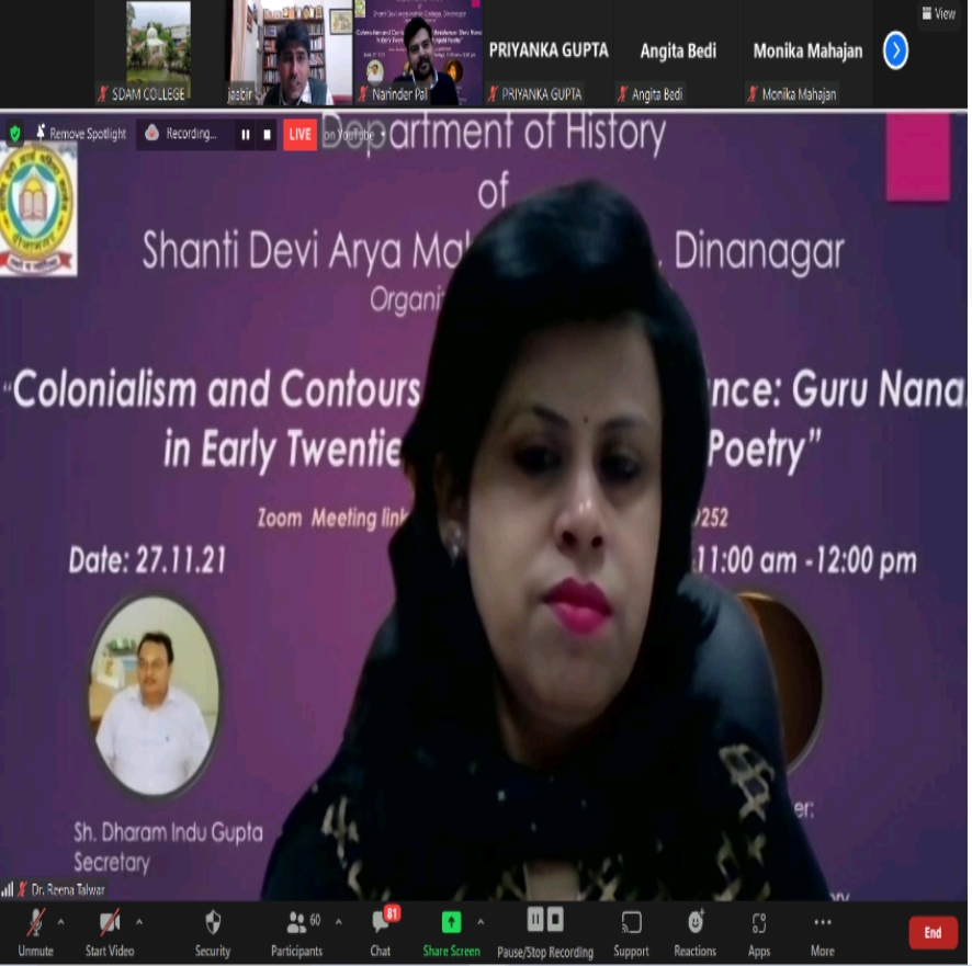 He said, ‘’The cult of modernism have fostered colonised implications in the context of Punjabi poetry’’. He also stated a meticulous account of innumerable examples of cultural resistance. Dr. Reena Talwar expressed her views on the profound preachings of Guru Nank Dev ji and motivated the students to follow the three foremost principles- ‘Naam Japna, Kirat Karna and Vand Chhakna’. Mr. Narinder, the coordinator of this eventful webinar extended his gratitude to the eminent speaker, the organisers and the Department of Computer Science and IT for their untiring efforts.