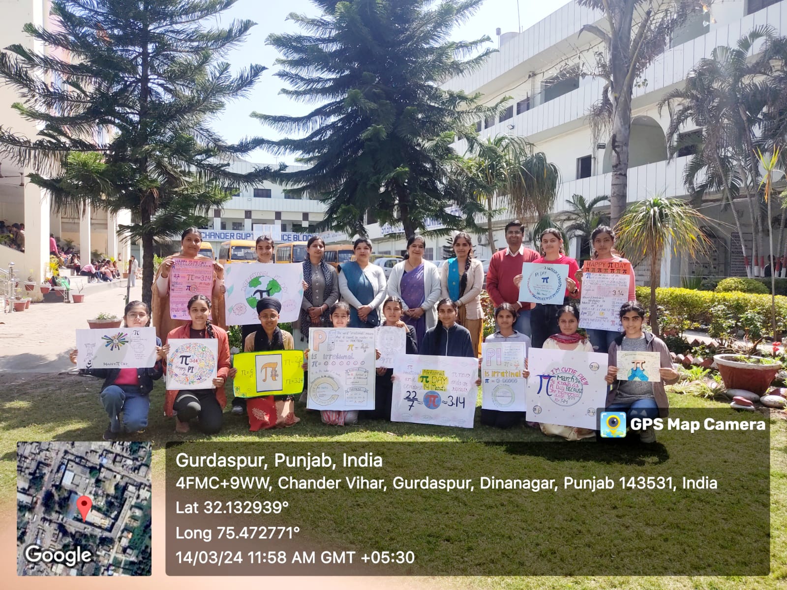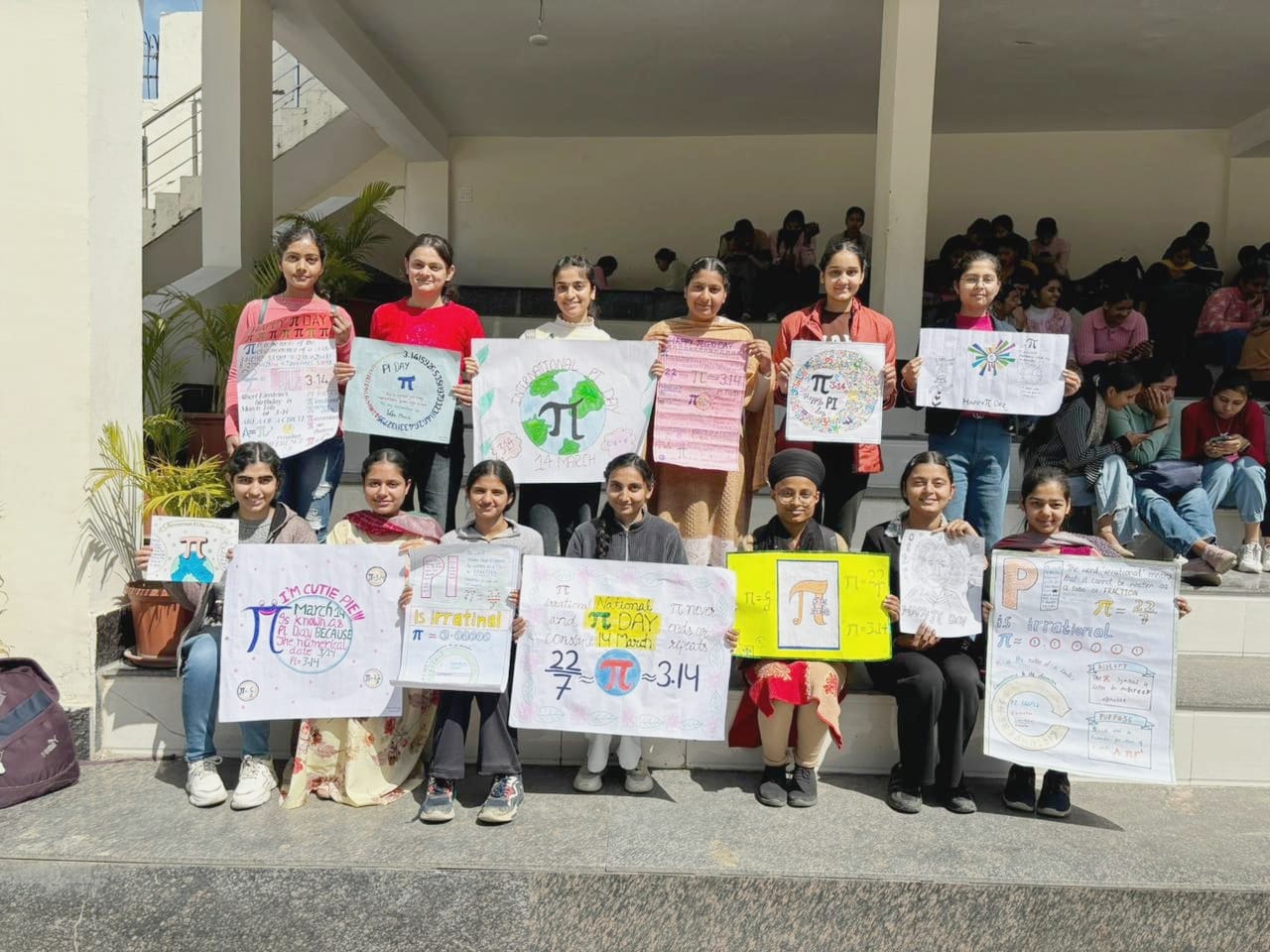 Math enthusiasts around the world, from college kids to rocket scientists, celebrate Pi Day or 3/14 — the first three digits of an infinite number with many practical uses. Emphasising the importance of the Pi-Day, Madam Principal said that the day provides us with a way to celebrate math, have some fun and recognize how important math is in all our lives. Mr. Amandeep talked about the theme of International Day of Mathematics 2024 which was 'Playing with Math'. More than 15 students of different classes participated under the said theme. Mr. Amandeep with Ms. Sandeep kaur and Ms. Sarika scrutinised every poster with dexterity. The winners were awarded by Madam Principal and the faculty. Madam appreciated the efforts of Mathematics Department.