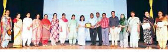 Quiz Competition, Poster Making , Declamation Contest and Essay writing competitions were organised to create awareness about Drug Abuse , Blood Donation, HIV /AIDS and T.B . Seven Red Ribbon Clubs of District Gurdaspur took part in these competitions. Mr Ravipal in his inspirational speech motivated the students to come forward to fight against these problems with the help of education by creating awareness. He also sang a song on importance of Daughters. Principal Dr Reena Talwar in her address said that drugs gave relaxation and enjoyment for short time but one has to repent for whole of his life . She said proper attention given by parents and good mentoring by teachers can motivate our youth to indulge in good habits and become responsible citizens of India. Shanti Devi Arya Mahila College Dinanagar, Govt. College Gurdaspur, BUC College Batala , Hast Shilp College Batala and Baba Ajay Singh Khalsa College Gurdasnangal were selected as the Five Best Red Ribbon Clubs of District Gurdaspur and their Program Officers were given Appreciation Certificates and Mementoes by Directorate of Youth Services, Punjab. Sh Dalwinder Dyalpuria in his own way by singing and through humorous talks motivated the students to donate blood and stay away from drugs and respect their parents.. Students really enjoyed his motivational speech and songs . Asst. Director Mr Ravipal honoured the chief guest Dr Reena Talwar and both the judges by presenting them Mementoes and plants . Mrs Neenu Sharma was also honoured with memento and appreciations for her meticulous job of conducting stage for this program.. Dr.Sushma Gupta ,Dr. Kulwinder Kaur Chheena ,Mrs. Sunita Verma , Mrs. Sangeeta Malhotra , Mrs.Deepak Jyoti ,Mrs. Randeep Dhoot, Mrs. Parveen Saini ,Dr. Anjana Malhotra, Mrs. Jyoti Saini , Mrs. Sonika Gupta ,Mrs. Meenal Gupta and Miss Dilpreet also attended this function .