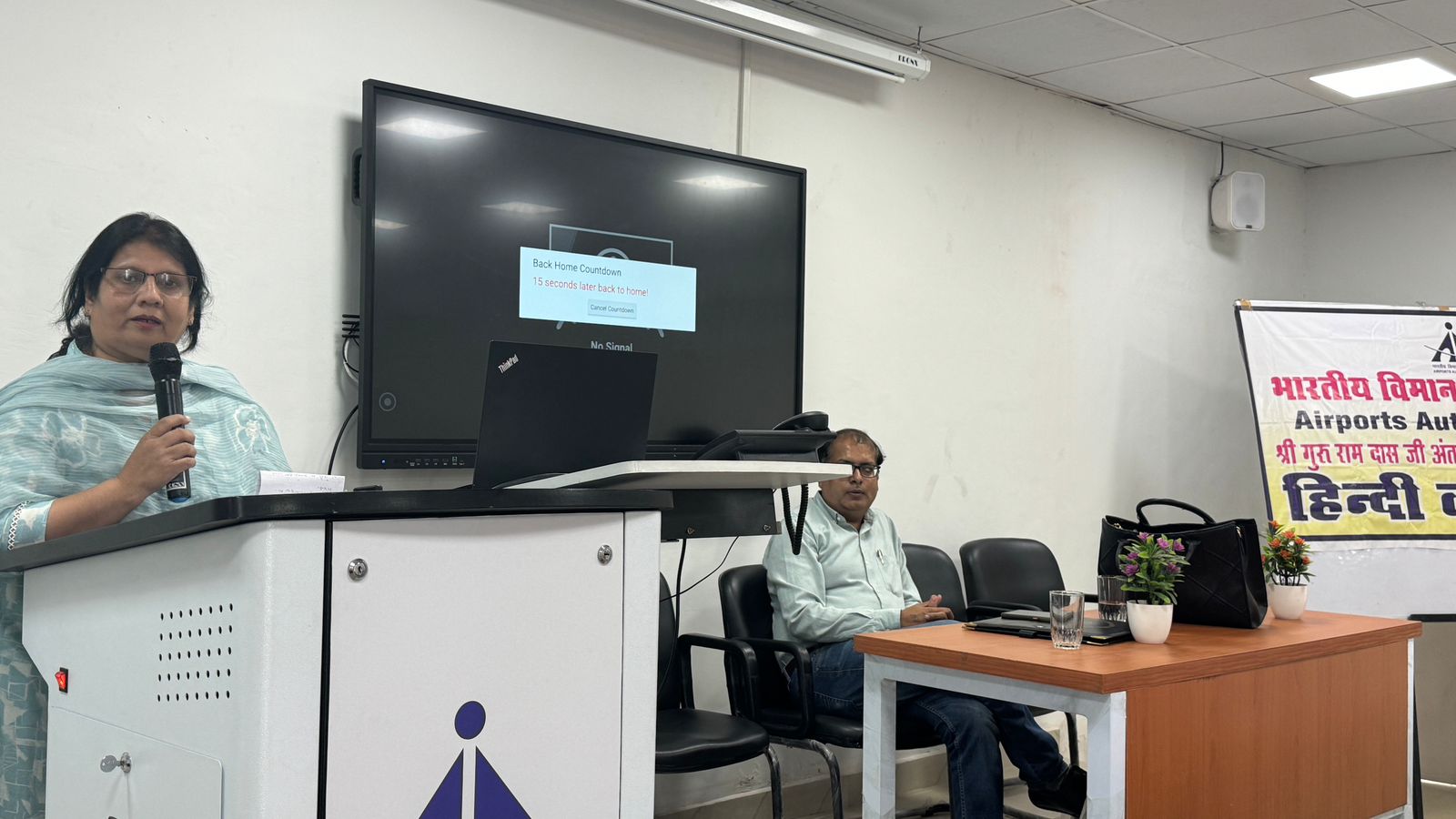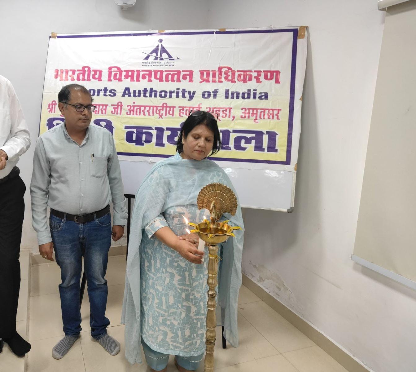 Dr. Poonam Mahajan lucidly and effectively presented her views on "Use of Hindi in Administrative Correspondence: Problems and Solutions" as the keynote speaker, while Prof. Sunil Kumar (Dean, Faculty of Languages, Guru Nanak Dev University, Amritsar) presided over as chief guest. All the staff of the airport authority thoroughly enjoyed the session and noted down the main points. Madam Principal Dr. Sushma Gupta appreciated the efforts of Dr. Poonam Mahajan.