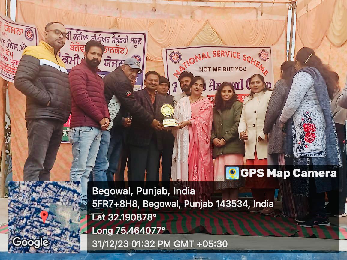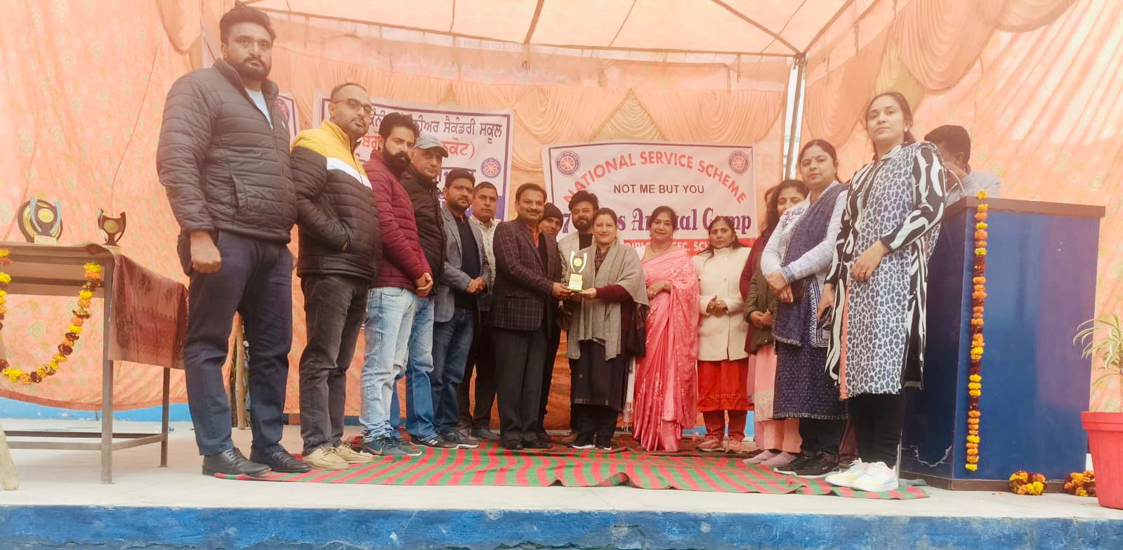 They both extol the performances held by the NSS Volunteers of the school. Madam Principal in her address, reaffirmed the Motto of NSS "Not Me But You" and reflected the essence of democratic living and upheld the need for self-less service. She gave an overview of the courses and scholarships offered by the college. Ms. Sangeeta spoke about the overall aim of NSS which is the Personality Development of students through community service. She added that NSS inculcates the spirit of voluntary work among students and teachers through sustained community interaction. Madam Principal expressed her gratitude to Mr. Raj Kumar, Principal, Mr. Jasveer Kumar, NSS Program Officer and the School Faculty. At the end of the event, they were honoured for their untiring dedication and for being exceptional NSS Program Officers.