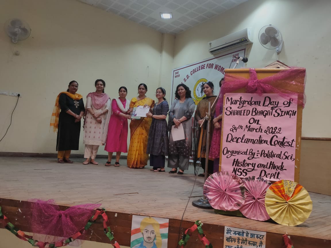 24 Mar 2022 ↑ Inter-College declamation contest was organized by Pt. Mohan Lal S.D.College for Women, Gurdaspur on the topic of "Shahid Bhagat Singh " on 24th March, 2022. Our student of BCA 4th Sem, Mansi Sharma got third position in the competition.