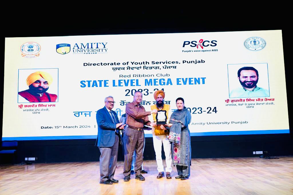 In this State Level Mega Event, at Amity University, Mohali, prestigious personalities like Vice Chancellor, Dr. R. K. Kohli, Dr. Dalip Kumar (Registrar), Chief Guest, Ms. Rupinder Kaur (Assistant Director Youth Services) and Mr. Kulwinder Singh awarded Best Program Officers from each districts of Punjab. It’s an honour that she has been awarded with the Best Program Officer Award three times on district level. Adding to its fame, the Red Ribbon Club of Shanti Devi Arya Mahila College under her leadership has been graced with the honour of Best Club Award. For this huge achievement, esteemed principal Dr. Sushma Gupta congratulated her and wished her the best part of luck for her future endeavours.