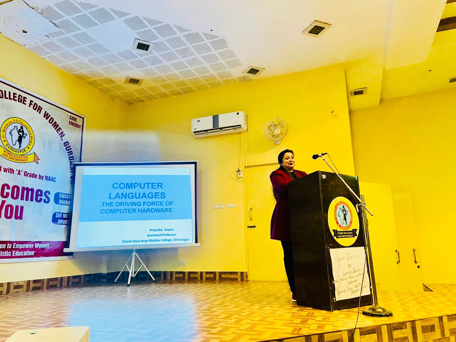09 Jan 2023 ↑ It’s a matter of pride that Mrs Priyanka Gupta, Assistant Professor, Department of Computer Science, Shanti Devi Arya Mahila College, Dinanagar was invited to present a guest lecture on the *‘Computer Languages: The Driving Force of Computer Hardware’* at *Pt. Mohan Lal S.D. College for Women, Gurdaspur* on 7th January, 2023. She interacted with the students and teachers of the Computer Science Department. She gave valuable insight on the acquisition of computer languages. While emphasising on the importance of computer languages, she gave an overview on its latest trends. She answered all the queries put forward by the students of the said college. At the end of the lecture, she was honoured for her ingenious ideas.