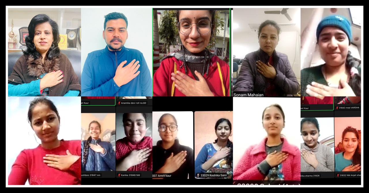 Martyrs’ Day’ was celebrated in Shanti Devi Arya Mahila College under the able guidance of Principal Dr. Reena Talwar to commemorate the sacrifices of freedom fighters on 31 January,2022. 30 January is the date observed in the national level as ‘Martyrs’ Day.’ The date was chosen as it marks the assassination of Mohandas Karamchand Gandhi in 1948, by Nathuram Godse. A pledge to eliminate corruption in the administrative system and drug addiction among youths was taken online by the students of this esteemed institution under the leadership of Mr. Narinder, Head, Department of History, and Ms. Dilpreet Kaur, Head, PG Department of English.