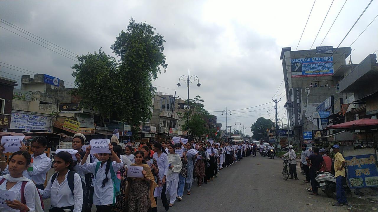 The students marched from the college premises to the streets, expressing their outrage. The feeling of insecurity among girls was shattered when they took up swords against the rapists. The students regretted the present condition of women where once there was a Mahabharata against the insult of women, but now the existence is being questioned. A street play was also organized on this occasion, with slogans like 'Arise Durga, take up arms, Govind will not come now' filling the air. The students lit candles in the college premises to protest. Principal Dr. Sushma Gupta said that such heinous crimes shame humanity, and now it's time to have provisions for punishment that make the perpetrators' souls tremble. Prof. Sunita Verma, Prof. Sangeeta Malhotra, Prof. Randeep Dhoot, Dr. Neenu Sharma, Dr. Parveen Saini, Dr. Poonam Mahajan, Prof. Taljinder Kaur, Mr. Robin Sharma, Mr. Sudhir Kumar, and Mr. Rakesh Joshi made significant contributions to the program. Finally, Principal Dr. Sushma Gupta specially thanked the police department for their cooperation.