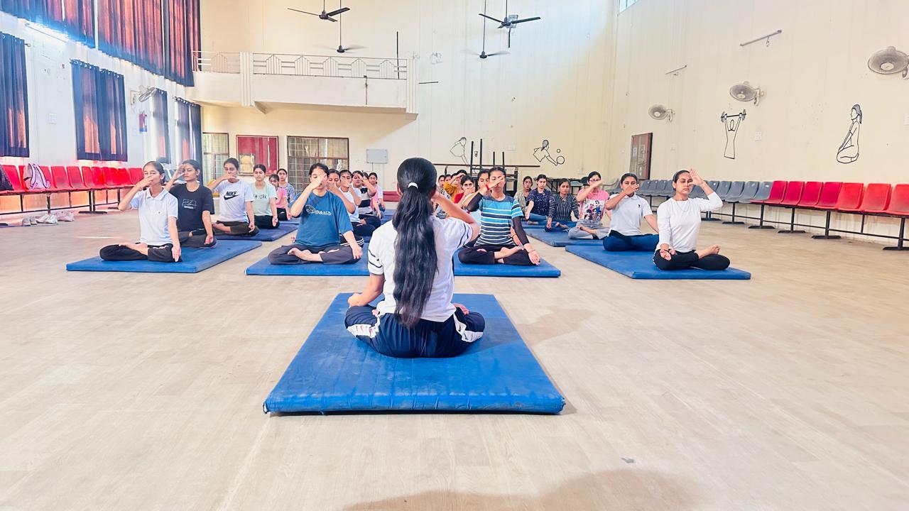 On this occasion, Ms. Taljinder Kaur and her ace student Namarta practiced Yoga poses with the teacher and students. While giving detailed information about the importance of yoga in human life to the students, She said that yoga has special importance in human life and every person should do yoga for physical and mental fitness. They practiced many Yoga Poses like Tadasana, Sukhasana and many more. The students even made posters to create a general awareness. Principal Ma’am Dr. Sushma Gupta commended the program organized by the departments.