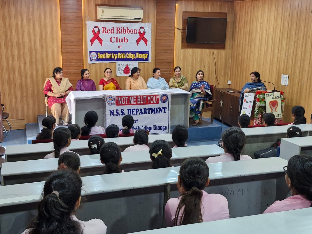 Dr. Poonam Mahajan was the main speaker of the day and she told that so many people required blood daily not for only accident recovery but also for the treatment of cancer patients. She motivated students to Keep Blood Bank shelves full by making their best efforts. In the event NSS Volunteers, NSS Program officers: Prof. Sangeeta Malhotra (NSS Coordinator), Dr. Sushma Gupta, Prof. Sunita Verma (EBSB Coordinator), Dr. Deepak Jyoti, Prof. Jyoti Saini, Dr. Sonam Gupta Ms. Rama Kapoor were present and they promoted the idea of blood donation with a great zeal. All the staff members and students participated in the event very enthusiastically.