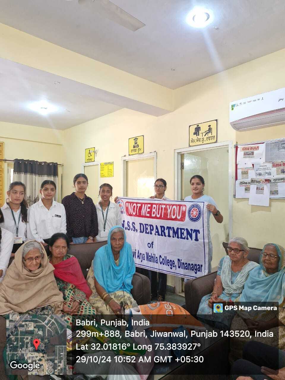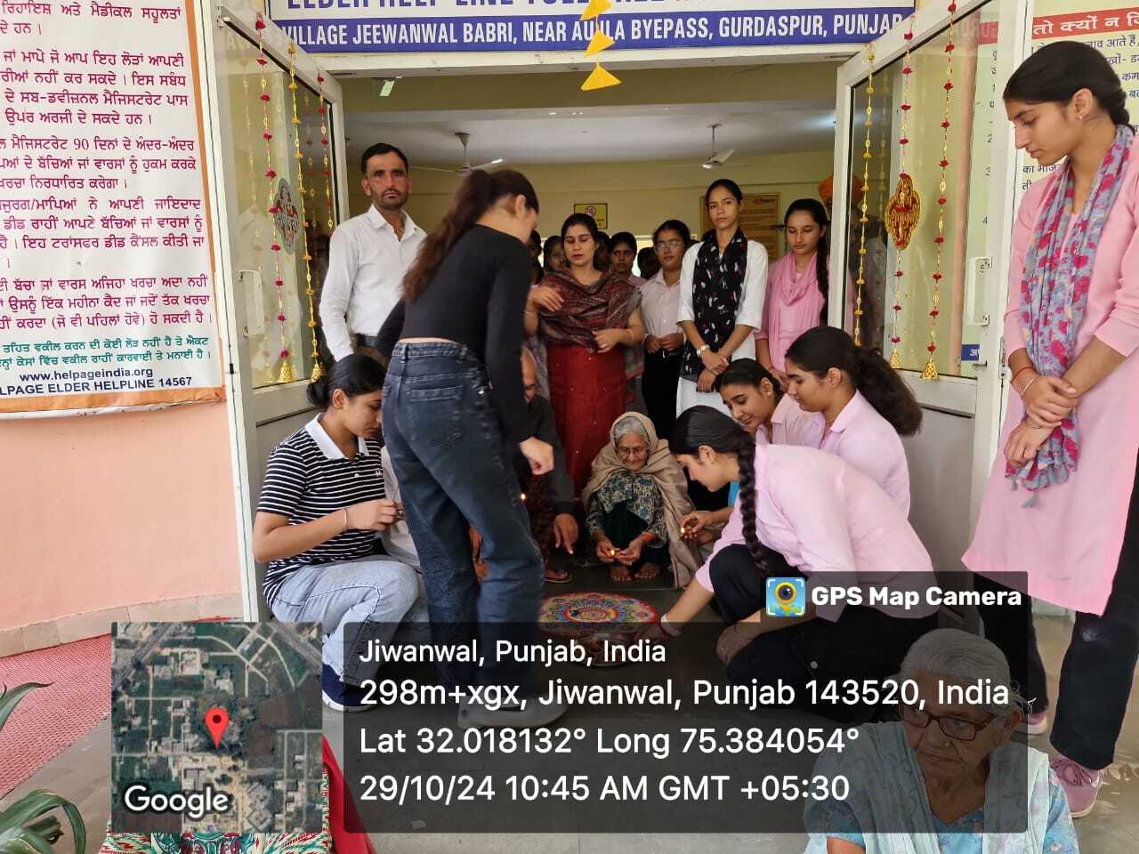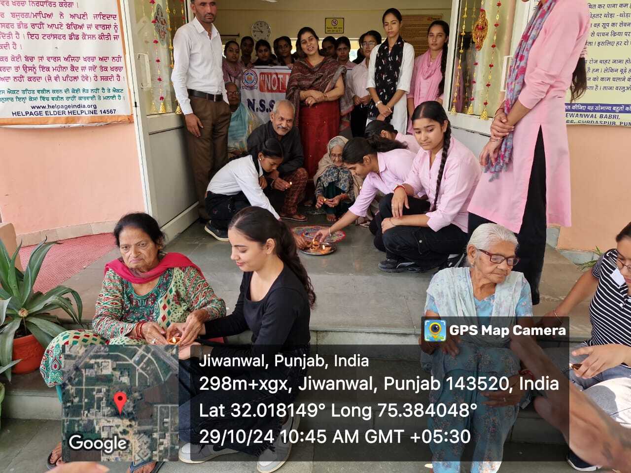 Volunteers made Rangoli and lit Diya’s in premises of Oldage Home. They distributed Clothes, Sweets , biscuits and fruits to all inmates. Manager Mrs. Arpana Sharma thanked the Principal , Program officers & volunteers of NSS Department for this thoughtful event.