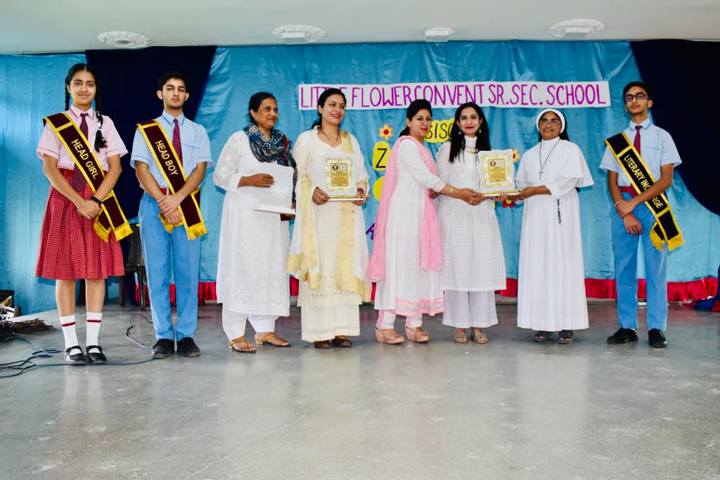 02 May 2023 ↑ Our teaching staff has always provided best of the services in showcasing a prominent brilliance in every field. Ms. Dilpreet kaur, Head, PG Department of English and Ms. Sonia Thakur, Head, Department of Sociology, were invited to judge a ASISC. Zonal Level Declamation Contest on 02-05-2023 at Little Flower Convent Sr. Sec. School, Gurdaspur. In the category divided to Sub-juniors, Juniors and Seniors, around 50 students participated from different schools. They were given a floral welcome at the start of the event. For their brilliant service and judgement, they were honoured with mementos as a token of gratitude. Principal Madam appreciated the efforts of the teachers.