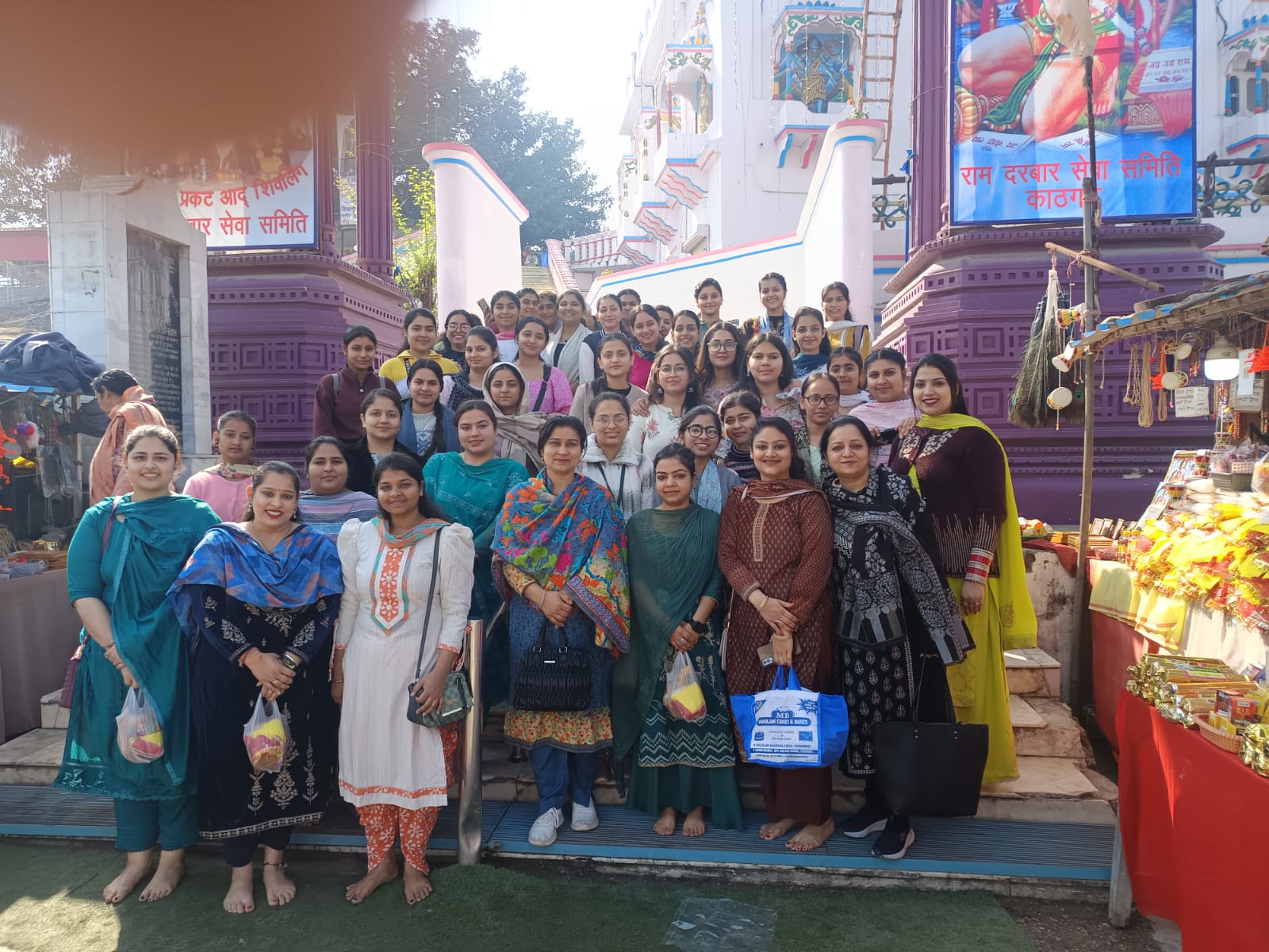 22 Feb 2025 ↑ PG Department of Commerce organized a spiritually enriching day pilgrimage to the revered Kathgarh Temple , dedicated to Lord Shiva and Goddess Parvati, under the aegis of Principal Dr. Sarla Nirankari and expert guidance of Dr. Parveen Saini, Tour and Travel Cell, on February 22, 2025. This meticulously planned excursion, coinciding with the auspicious occasion of Mahashivratri, aimed to foster unity, joy, and spiritual awakening among faculty members and students. As they embarked on this journey, the group experienced a profound sense of reverence, awe, and admiration for the temple's majestic architecture, ultimately culminating in a delicious langar and a renewed sense of purpose, unity, and spiritual enrichment.