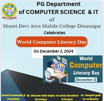 The workshop aimed to enhance the students' skills in computer literacy and provide them with hands-on experience in the latest computer techniques. Principal Dr. Sarla Nirankari and Dr. Sushma Gupta commended the efforts of Computer Science and IT Department. Madam Principal emphasised on the need and value of learning computer technology and skills. The event was also attended by Ms. Neha Saini, Ms. Kirti Gandotra, and Ms. Vaishali.