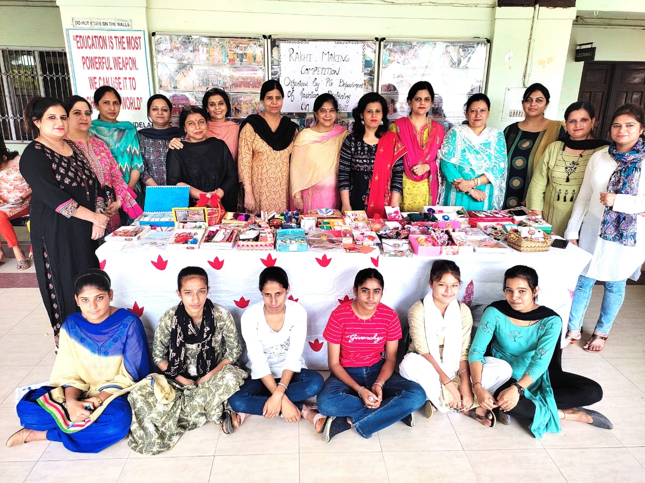 21 Aug 2021 ↑ PG Department of Fashion Designing organised Rakhi Making Competition on 21st August,2021 for celebration of Raksha Bandhan Festival. Principal Dr. Reena Talwar praised the artistic work done by students and motivated them to carry on their efforts and she also congratulated HOD Mrs. Jyoti Saini and Mrs. Meenu Gupta for their guidance. Dr. Kulwinder Kaur Chheena ,Mrs. Sangeeta Malhotra and Mrs. Randeep Dhoot were the judges.