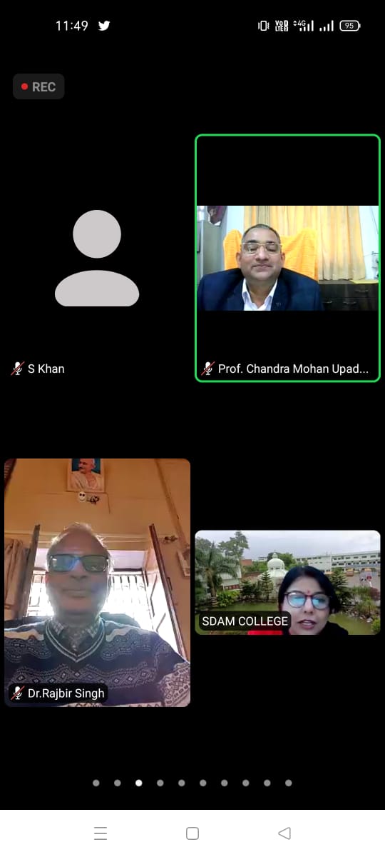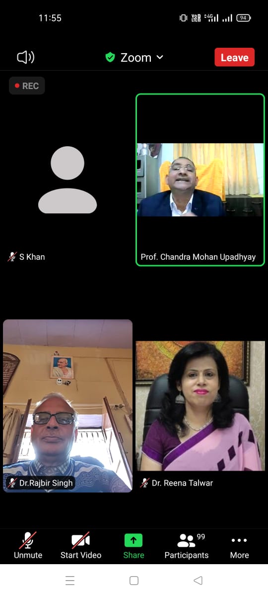 In his Talk Dr. Upadhyay discussed the growth process of Indian constitution. Thousand years before Christ when the people of Mithila established the world’s first republic. He discussed the historical growth of Indian constitution how we started from rig Veda Atharva Veda then he elaborated Arthashastra of Kautilya manusmriti of Manu and then he discussed many acts passed by Britishers to regulate India and after that he discussed the making of Indian constitution by constituent assembly. He also discussed that In European countries social and economic revolutions change the political environment and theories but in India and other parts of Asia politics change the social and economic environment of the country.Principal Dr. Reena Talwar stated that our constitution is a dynamic living institution. Whatever may be it’s perfection a constitution need not and should not stand in the way of countries progress even if it is made only to suit the condition and circumstances of one age it need to not fail in another. Our constitution is very flexible constitution. In her vote of thanks Dr. Anjana Malhotra stated that it is the beauty of our constitution that we are enjoying our rights in free environment. Our state is a welfare state and during the period of corona pandemic government proved this fact that we are a welfare state with socialist democracy.