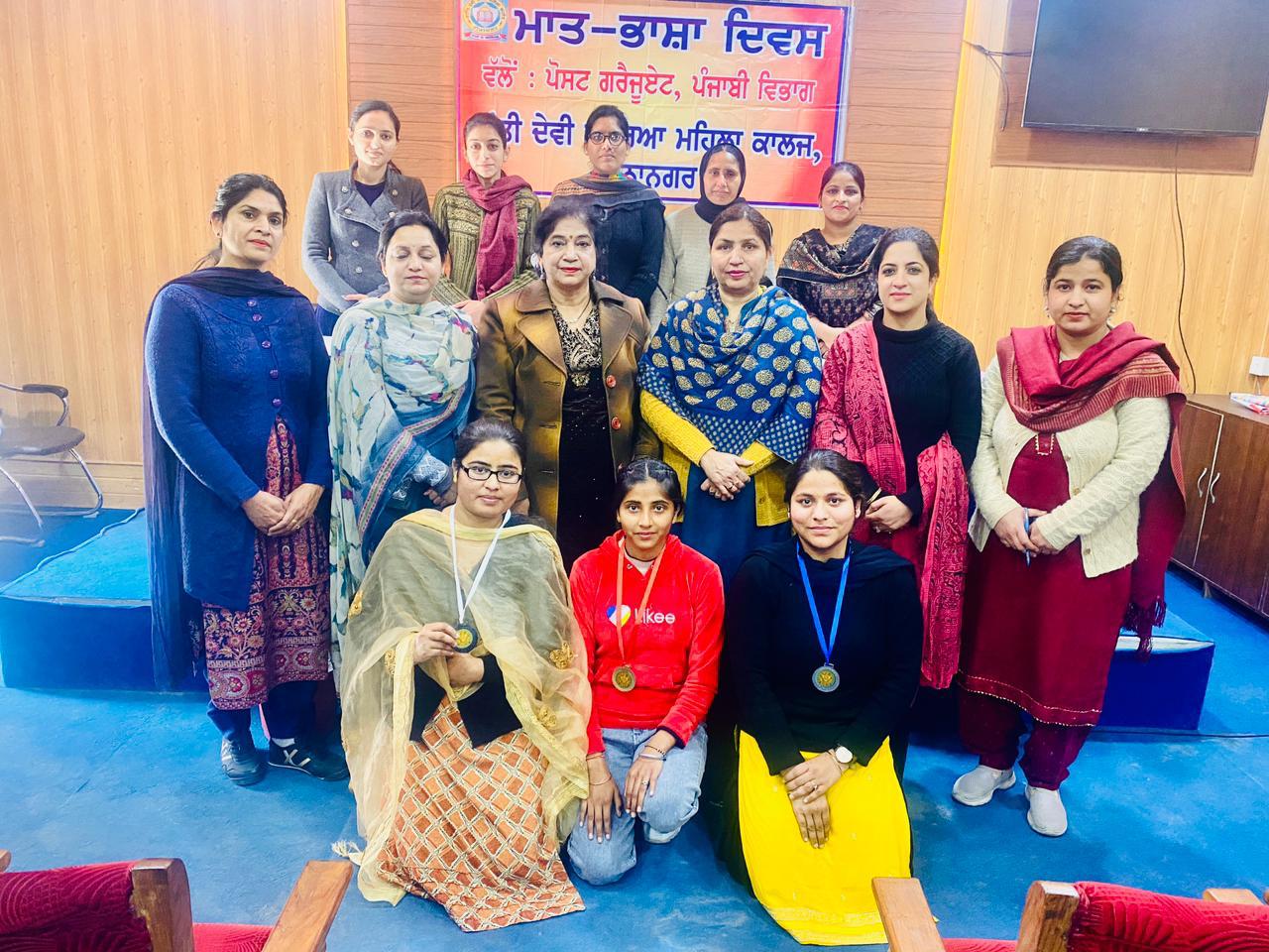 To mark this occasion, an Essay Writing Competition was organised on the Importance of Mother Language. The event was judged by Ms. Rukmani and Ms. Jagdish in which Saloni, Radhika and Savita Saini stood at first, second and third positions respectively. In her address, while felicitating the exceptional event, Madam Principal expressed her viewpoint that we all must be proud of our mother language Punjabi. She added that the day underscores the role of languages in promoting inclusion and achieving Sustainable Development Goals. The teachers of the department while giving an overview on the aspects of the event, stated the motto of celebrating International Mother Language Day which is ‘’to promote the preservation and protection of all languages used by peoples of the world". At the end of the event, the winners were awarded by Principal Madam and staff members.