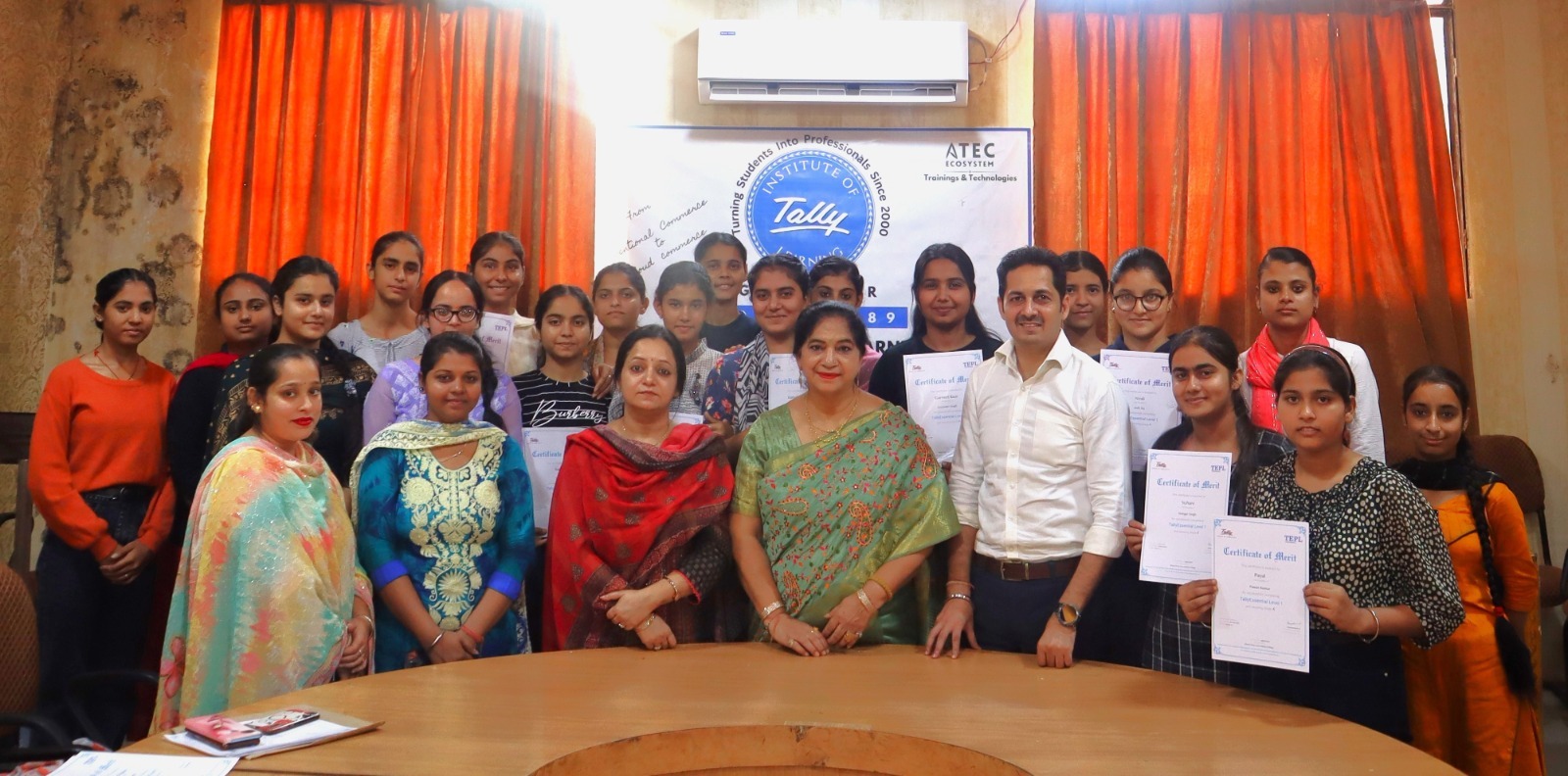 The college has signed MOU with Tally Education Private Ltd. Principal of the College, Dr. Sushma Gupta congratulated the students for the successful completion of the Tally training program. Dr. Neenu Sharma said that it is the regular feature of the college to provide practical training to the students to make them Techno savvy in this dynamic world.At the end of the training session, 26 students were awarded with certificates.