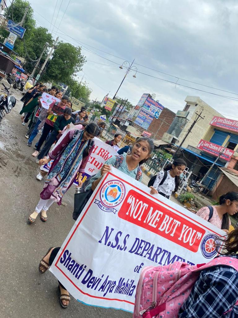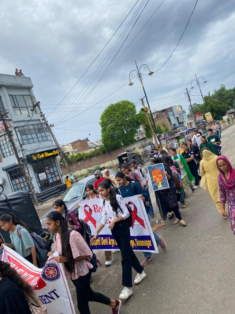 The said departments held a rally from the college to Dayanand Math, Dinanagar. A lecture-cum-seminar was also delivered to the students by Dr. Sonam Gupta, Head, Department of Psychology. She talked about its detrimental effects. She said that the theme of this year’s World No Tobacco Day is ‘We need food, not tobacco’. She added that the theme is chosen to spread awareness among tobacco farmers about alternative sustainable and nutritious crops. At this juncture, Dr. Sushma Gupta, Vice Principal Madam, Mrs Sangeeta Malhotra, Mrs Sunita Verma, Dr. Deepak Jyoti, Ms. Parveen Saini, Ms. Priya Gupta were present.