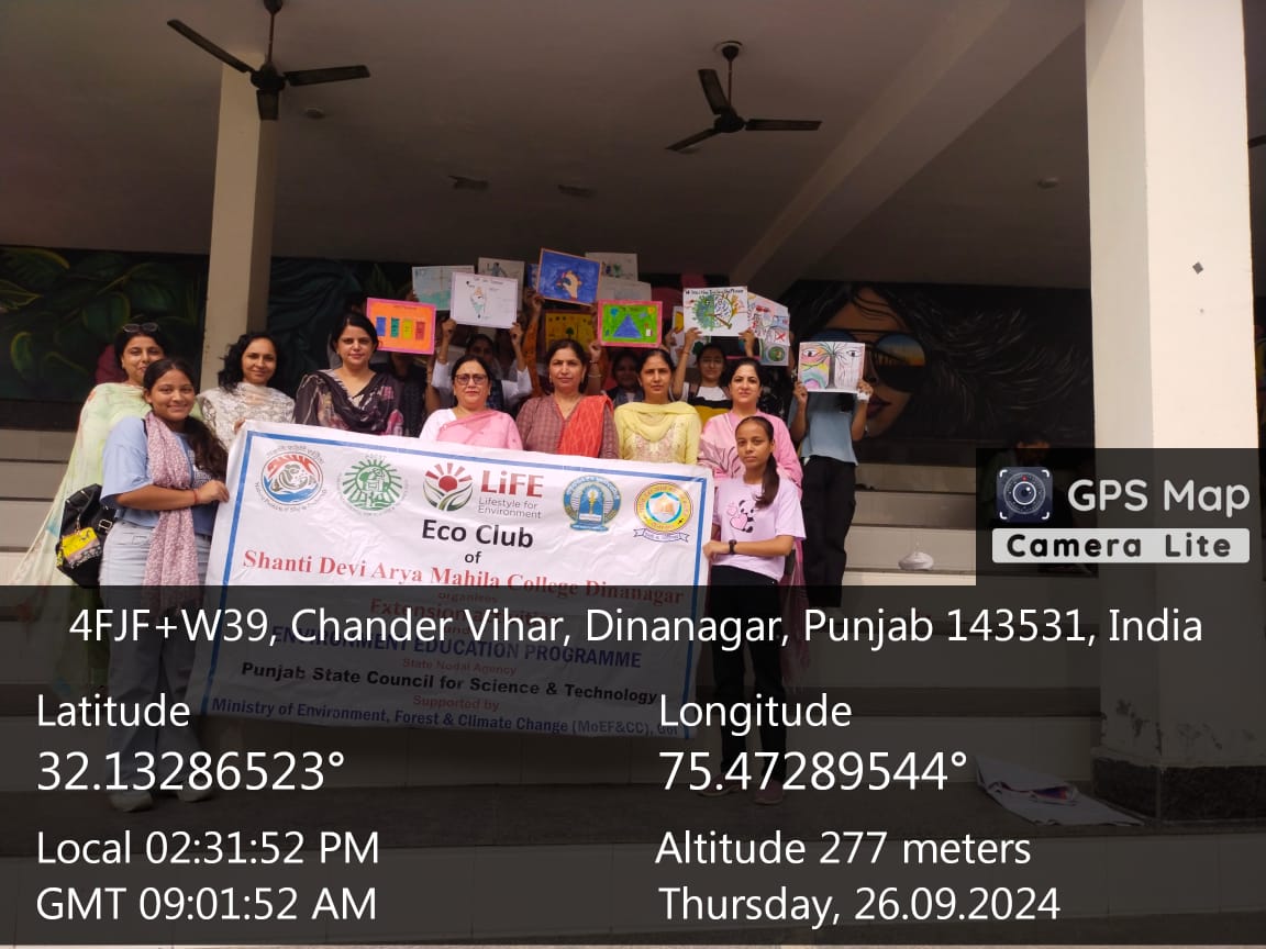 Other activities includes poster making and tree plantation. Neem sapling, a medicinal plant was planted in college lawn to mark the care of Environment health. Madam Mrs. Sunita Verma explained the significance of Neem tree. She told that Neem contains chemicals that might help reduce blood sugar levels, heal ulcers in the digestive tract, prevent pregnancy, kill bacteria, and prevent plaque from forming in the mouth. Ms. Savi Thakur and Ms. Daljeet from Chemistry Department guided the students in poster making.