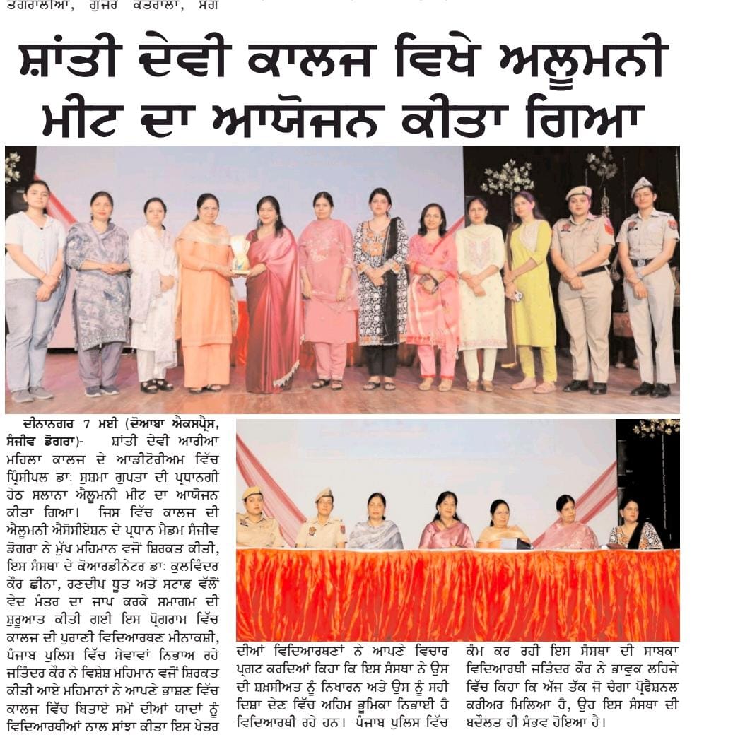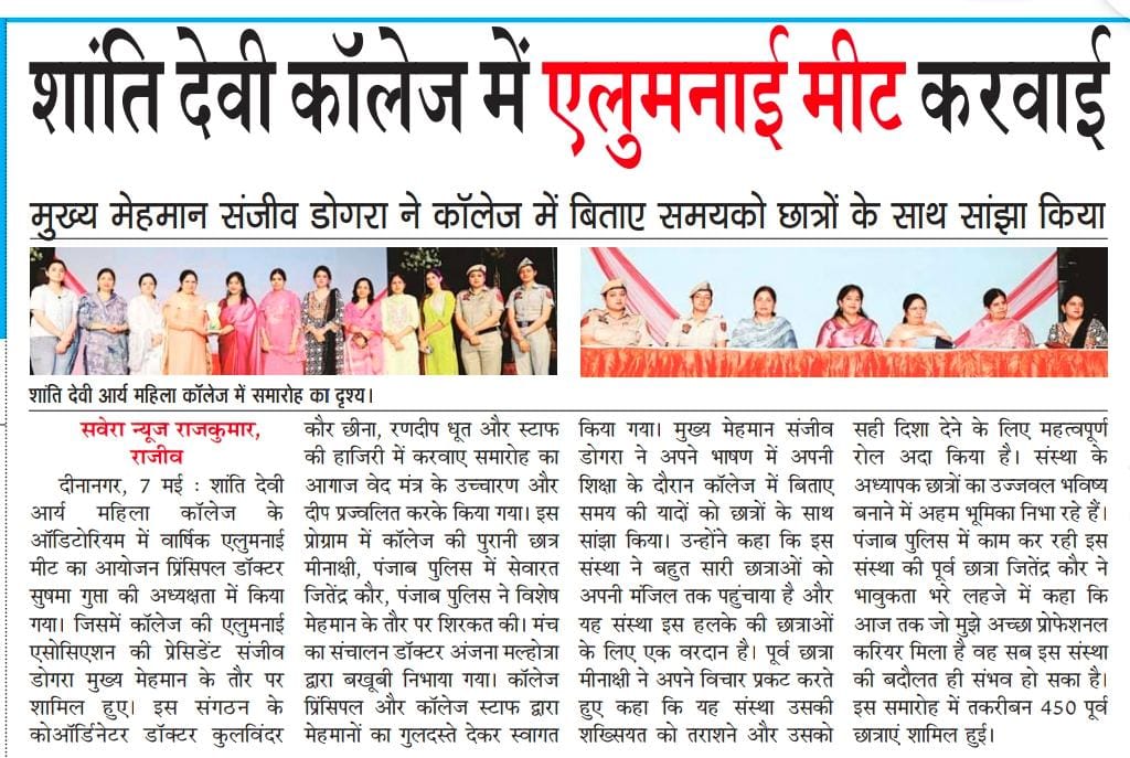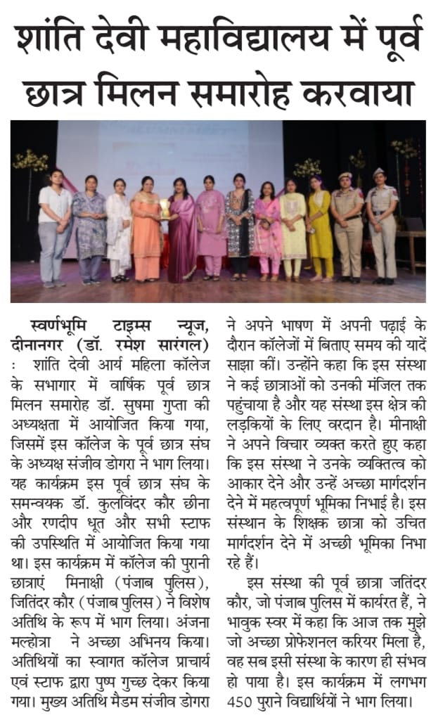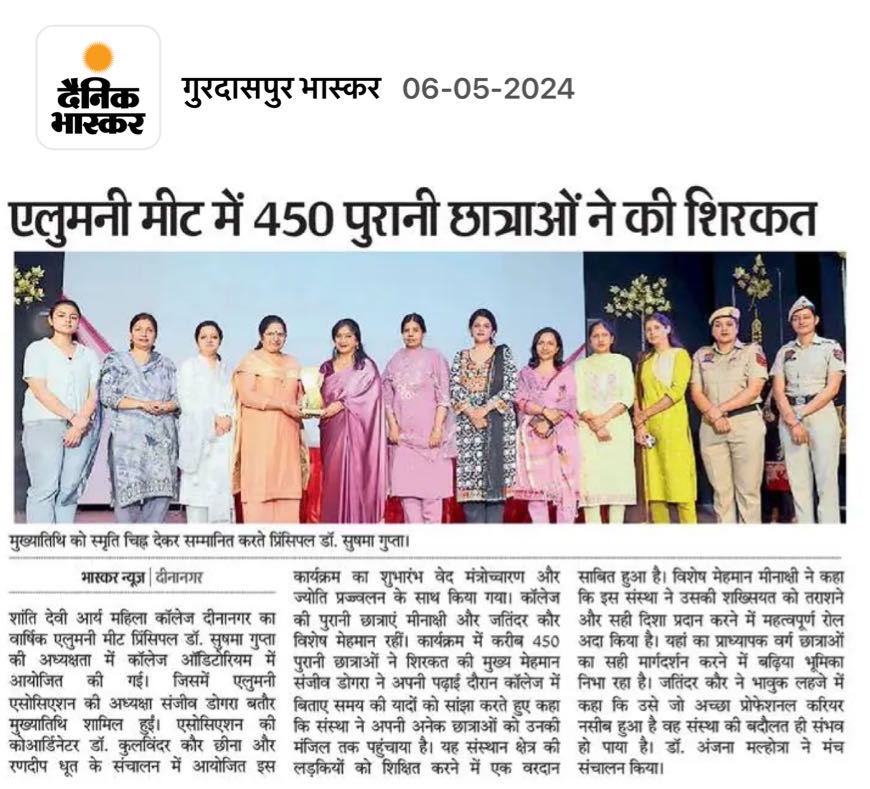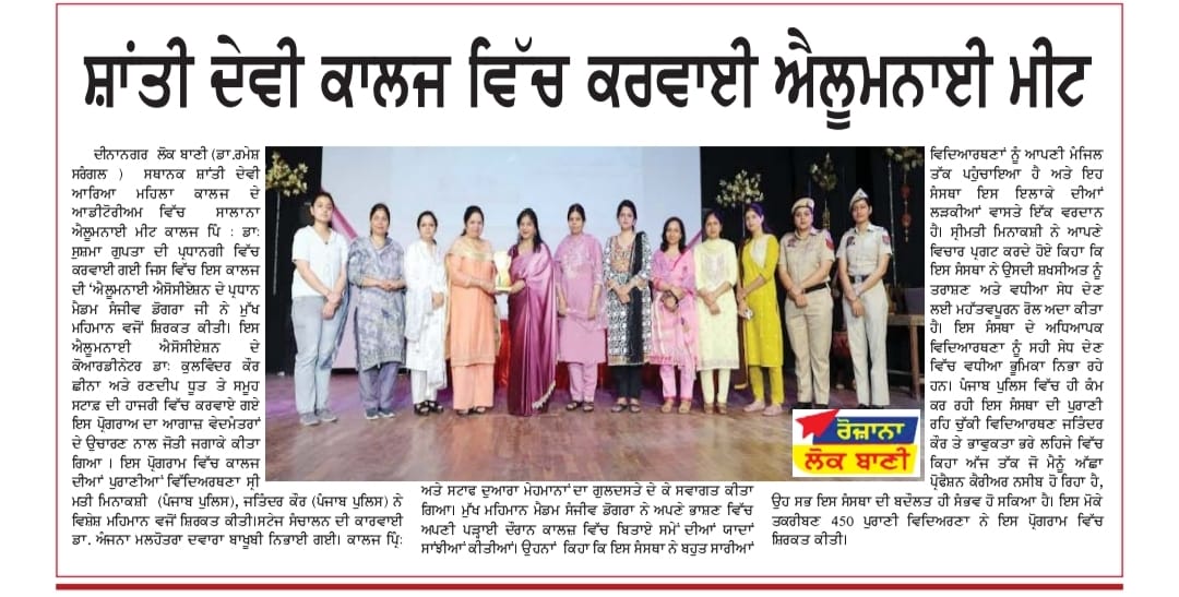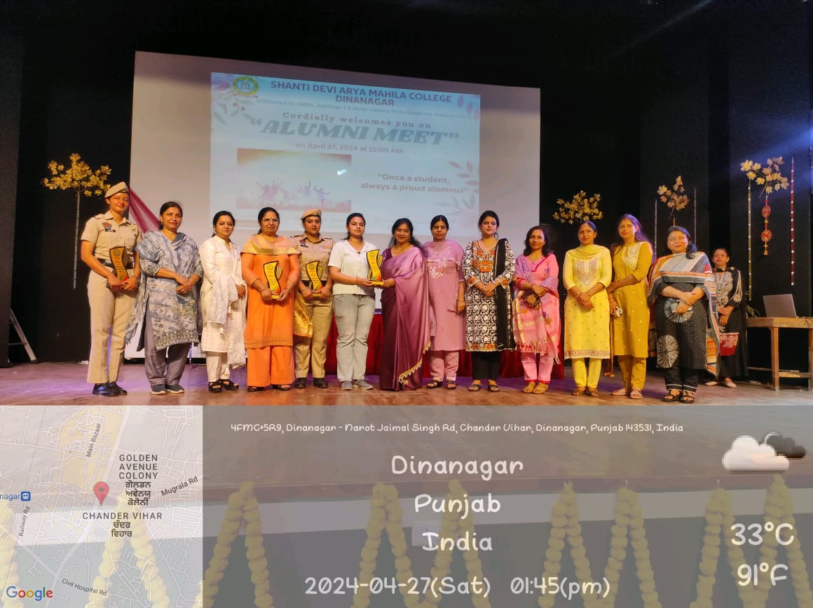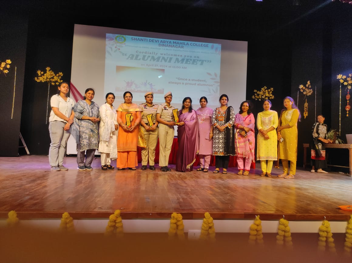 In her welcome address, madam Principal while stating the importance of Alumni Meet said that these meetings allow former students to come together and reconnect with their peers, faculty members, and their alma mater. Ms. Sanjeev Dogra, the eminent guest talked about her experience with the institution and expressed her gratitude to the staff members of the college. She emphasised on the importance of financial independence in every female’s life. Ms. Meenakshi while reminiscing her time talked about her volunteering in NCC and learning life skills under the guidance of her teachers. Ms. Jatinder emphasised on the importance of reading books. Ms. Chetna recited a beautiful self composed poem on teachers. Dr. Anjana conducted the stage and presented vote of thanks to all the guests. At the end of the event, Madam Principal along with other staff members honoured the guests with souvenirs.