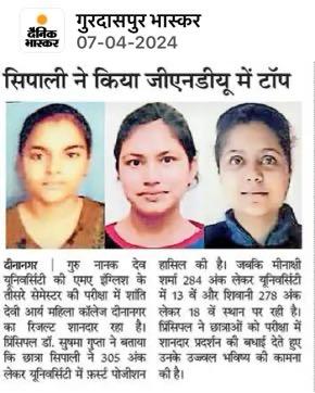 These students stood at 1st, 2nd and 3rd Position in the college respectively. Principal Dr. Sushma Gupta extended her felicitations to Ms. Dilpreet Kaur, Head, Department of English, concerned faculty members and also congratulated the students and their parents for the excellent performance and wished the students a bright future ahead.