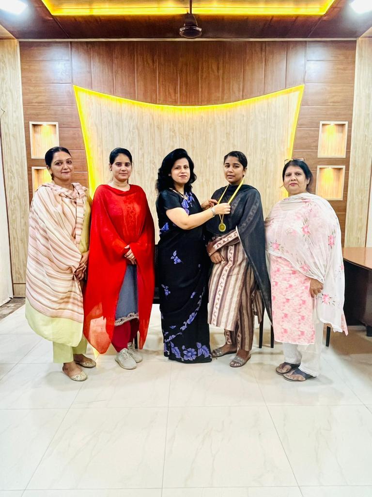 Principal Dr. Reena Talwar informed with utmost ecstasy and satisfaction that the students Nitiksha grabbed 1st University Merit Position getting 83% ; Twinkle grabbed 77.2%; Harpreet Kaur grabbed 75%. These students stood at 1st, 2nd and 3rd position in the college respectively. The said class got 100% pass result. Principal Dr. Reena Talwar extended her felicitations to Dr. Poonam Mahajan, Head, Department of Hindi, concerned faculty members and also congratulated the students and their parents for the excellent performance and wished the students a bright future ahead.