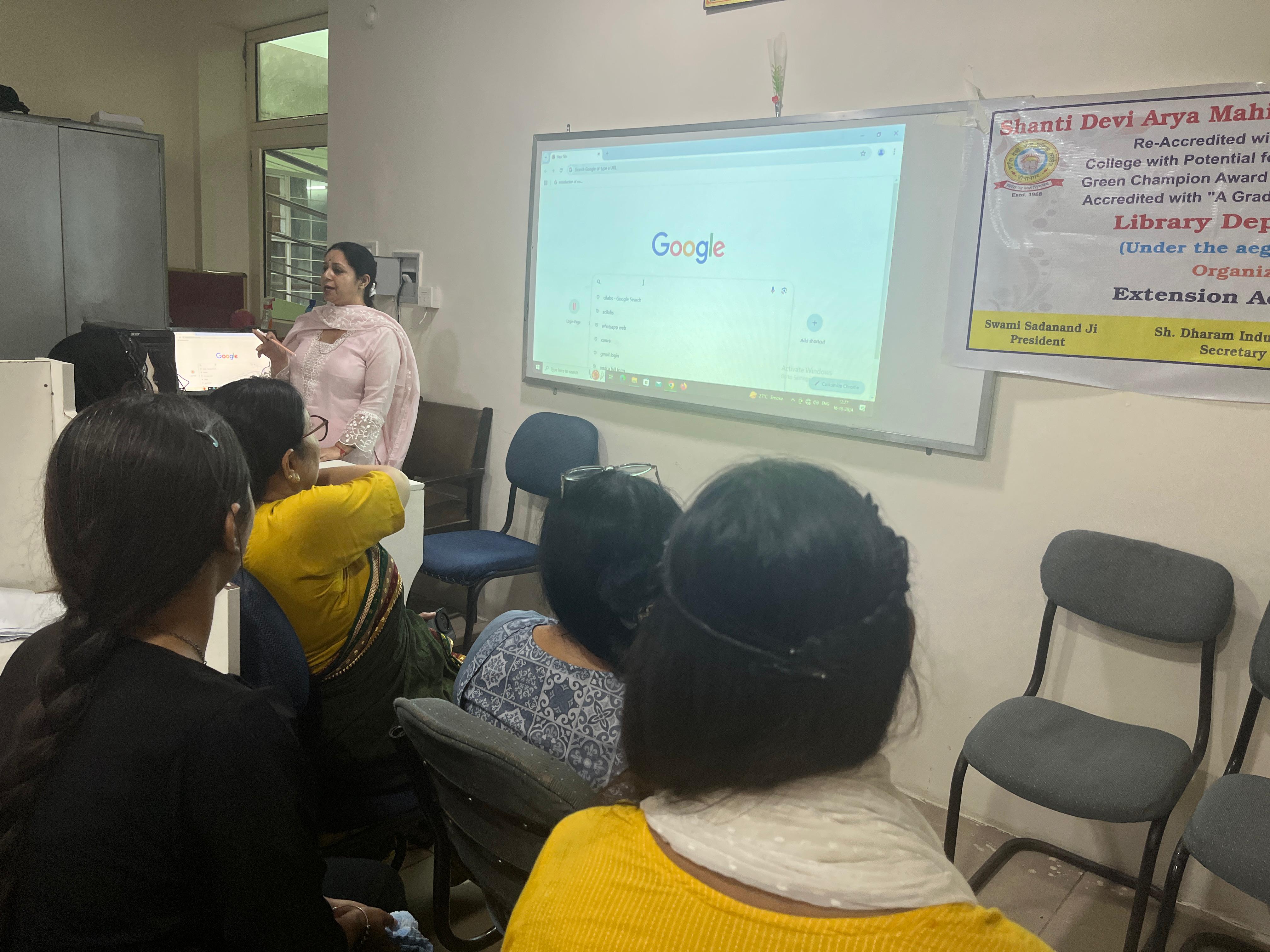 The session was designed to enhance students' knowledge of digital learning tools and to familiarize them with various e-resources available for academic purposes. The aim was to encourage students to maximize their use of digital platforms in order to enrich their learning experience. Mrs. Namita Bhalla and Mrs. Hardeep Kaur were the resource Persons in this workshop.