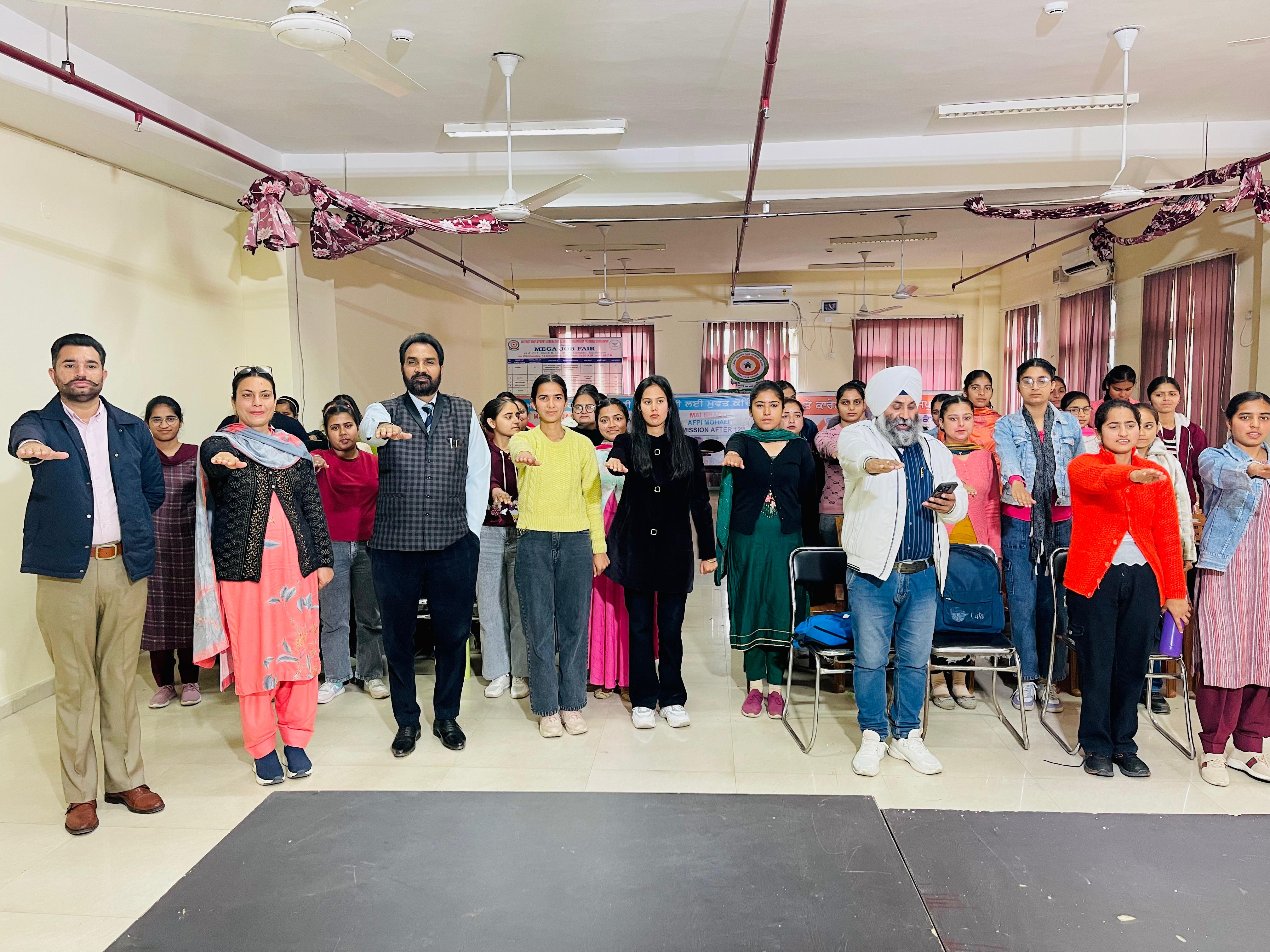 Mr. Rajesh added that the voter’s responsibility to vote responsibly is one of the strongest pillars of a democracy. The students along with Ms. Sonia Thakur, Department of Sociology, Ms. Radhika, Department of Computer Science and IT and the officers of District Public Relations Office took the voters’ pledge. Madam Principal appreciated the efforts of the club and the faculty.