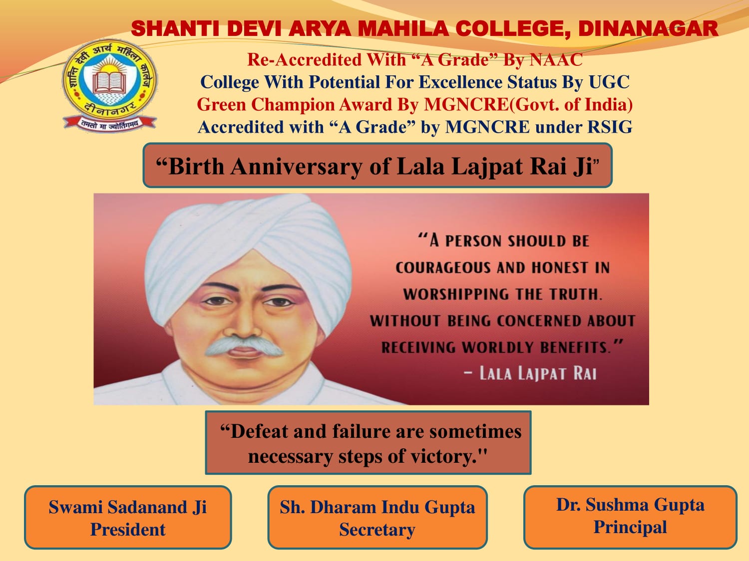 Addressing the students, Madam Principal said that Lala ji created a legacy of nationalism, unity and strength as he was a freedom fighter who was a firm believer in India’s independence, dedicated his whole life to the cause and played an important role in the Independence movement. Ms. Monika Mahajan, Head, Department of History, said that he promulgated the message of using indigenous products as it gave a major boost to the local economy and increased self-reliance. The students thoroughly enjoyed the screening inculcating the sense of patriotism. Madam principal appreciated the efforts of Ms. Monika Mahajan and her organising team.