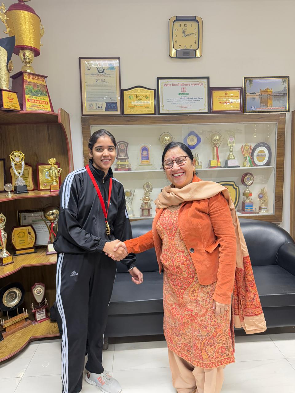 21 Nov 2024 ↑ Under the guidance of Principal Dr. Sarla Nirankari and Miss Taljinder Kaur, Head of Physical Education Department, Students participated in the Khedan Vatan Punjab Diyan State-Level Water Sports (Rowing) Competition held at Roopnagar (Ropar) from November 19 to 21, 2024. The college team put up an impressive performance, with Diya winning a gold medal and Tania securing a silver and a bronze medal. This achievement is a testament to the students' hard work, dedication, and teamwork.Principal Dr. Sarla Nirankari and managing committee congratulated the students and Miss Taljinder Kaur on their achievement, praising their spirit and enthusiasm.